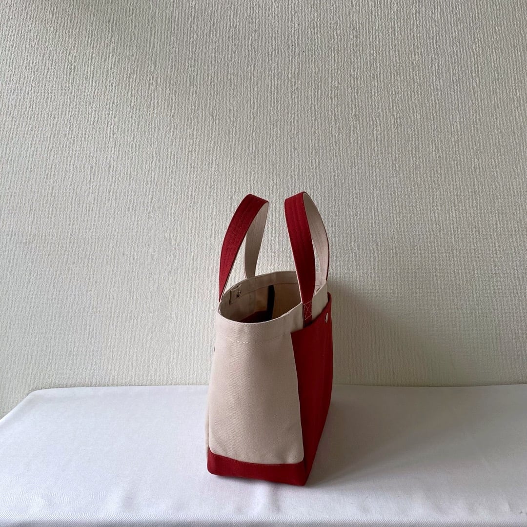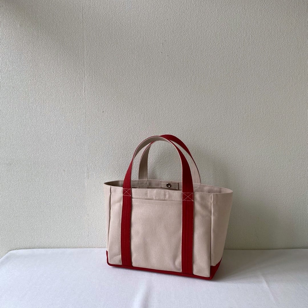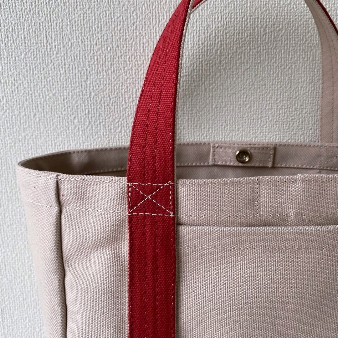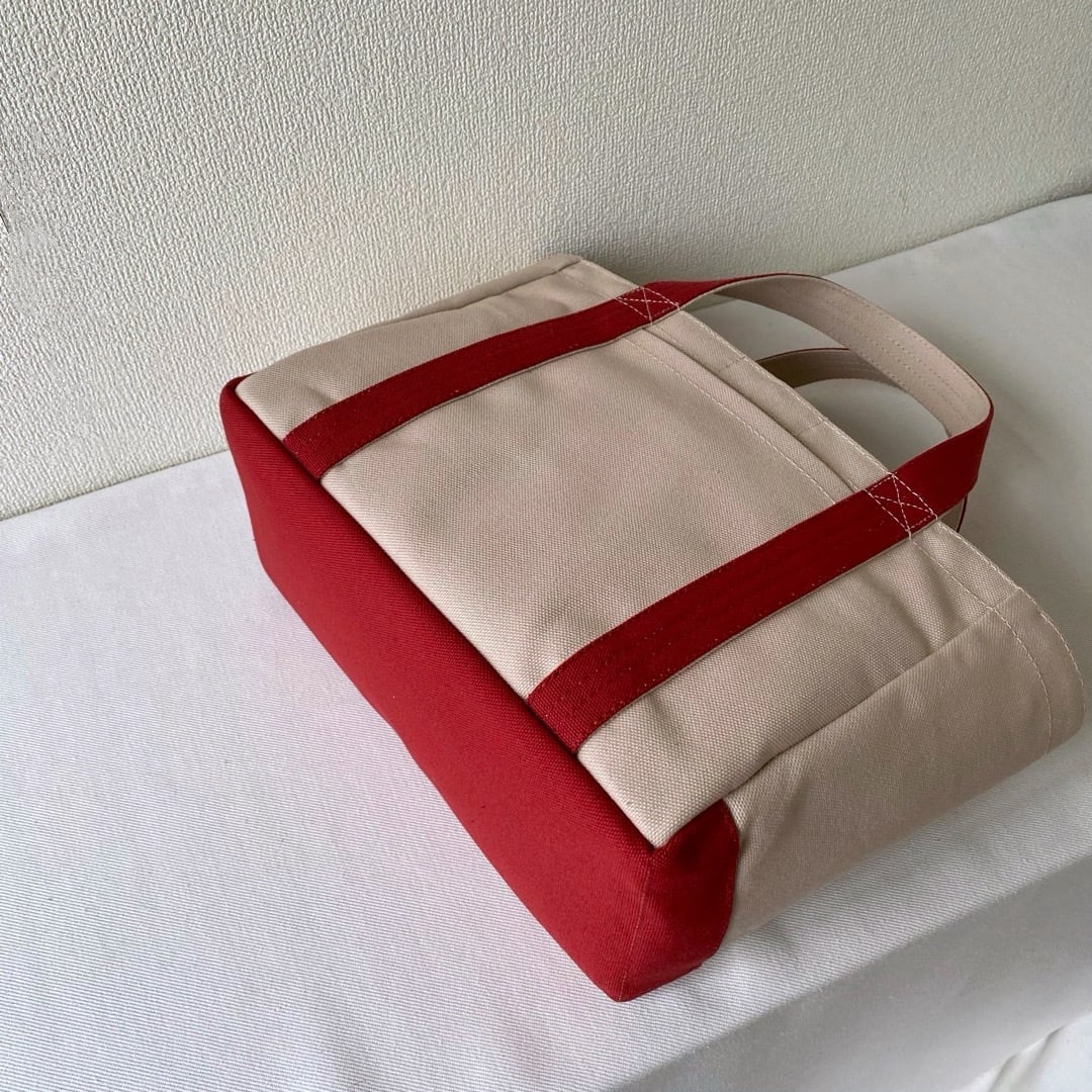 ■「軽いボックストート」小サイズ「サンドベージュ✕バーガンディ」です。