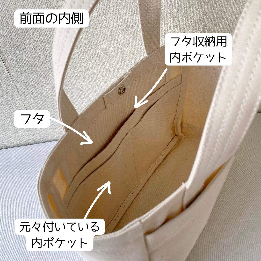 「軽いボックストート」小サイズ に、オプションの「固定出来るフタ及びフタ収納用内ポケット取り付け」しました。
