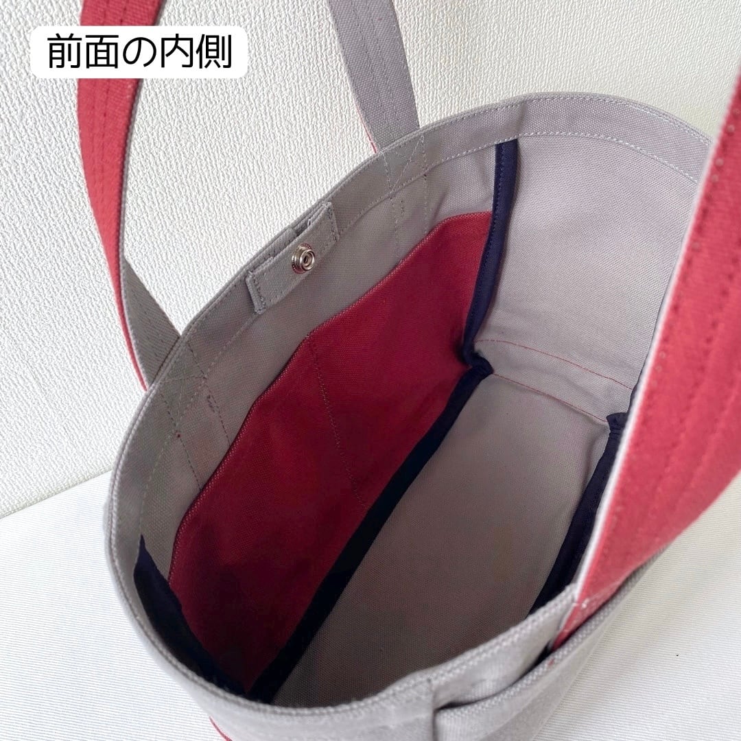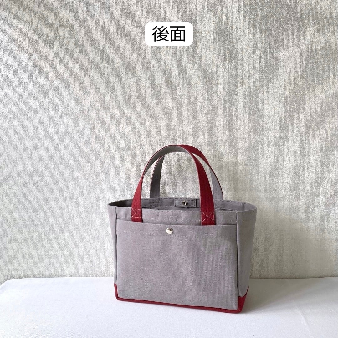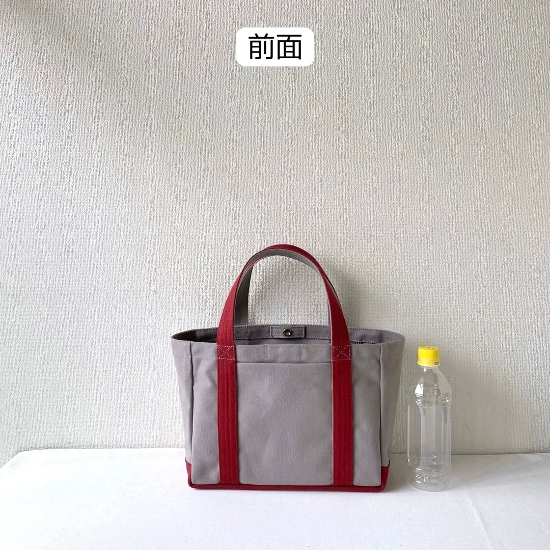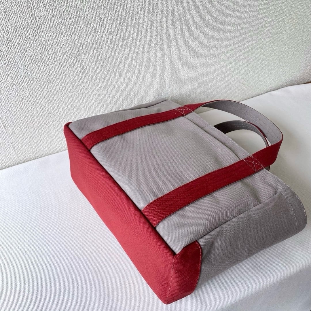 ■「軽いボックストート」小サイズ「グレー✕バーガンディ」です。