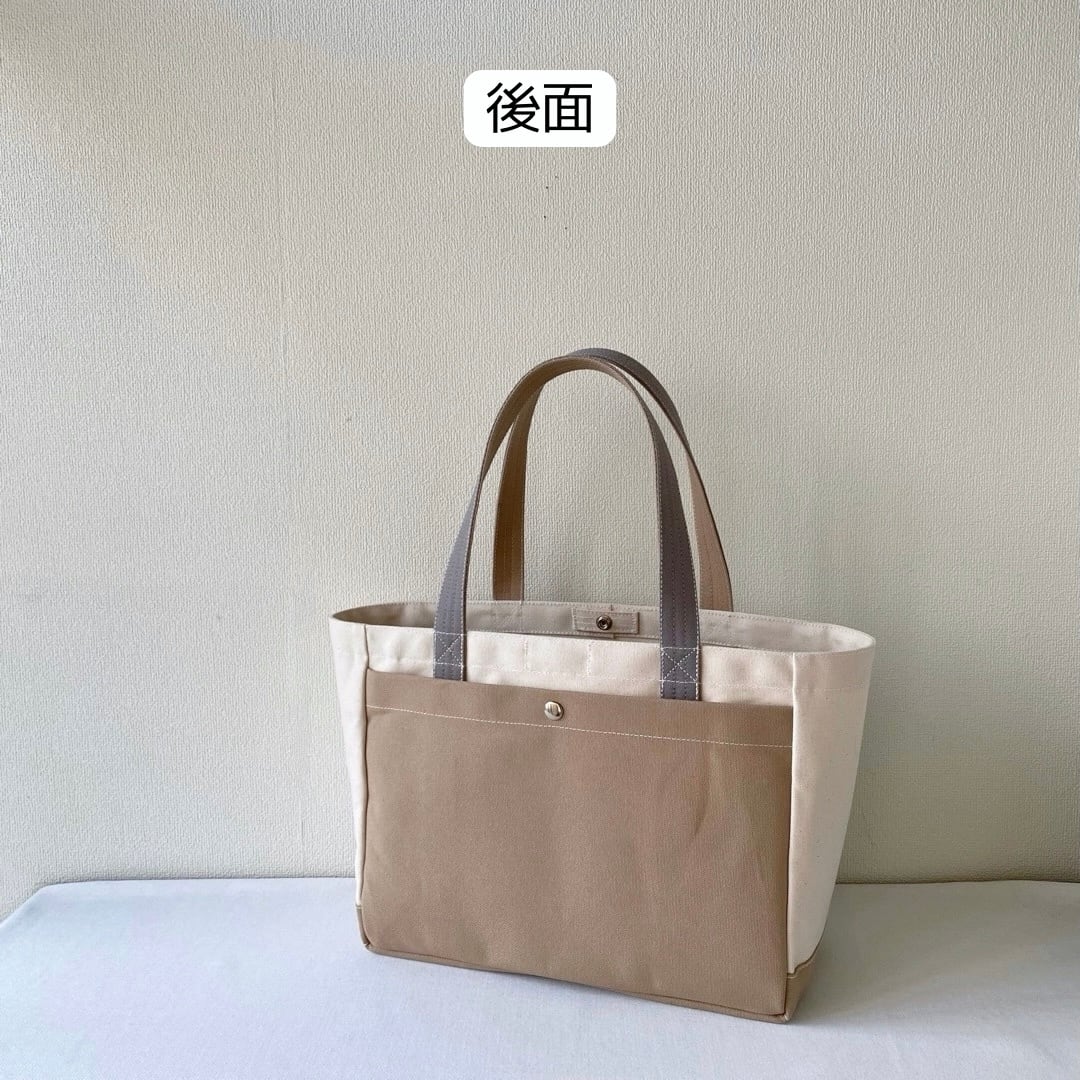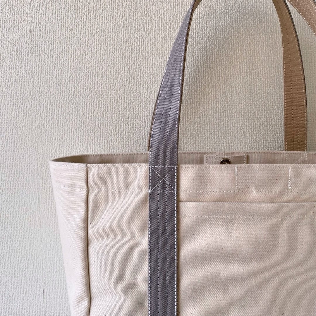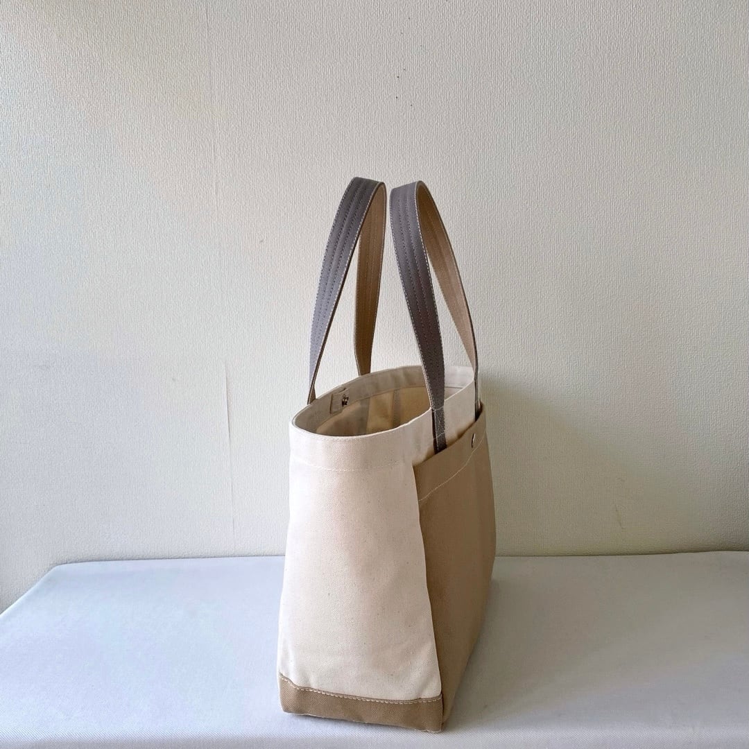 ■「軽いボックストート」通勤サイズ「生成り✕カフェオレ✕グレー」です。