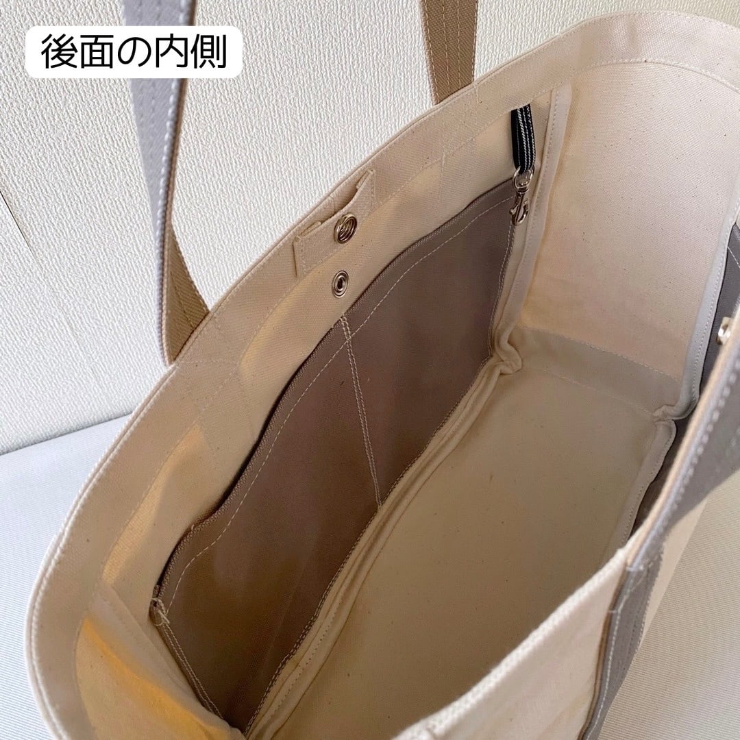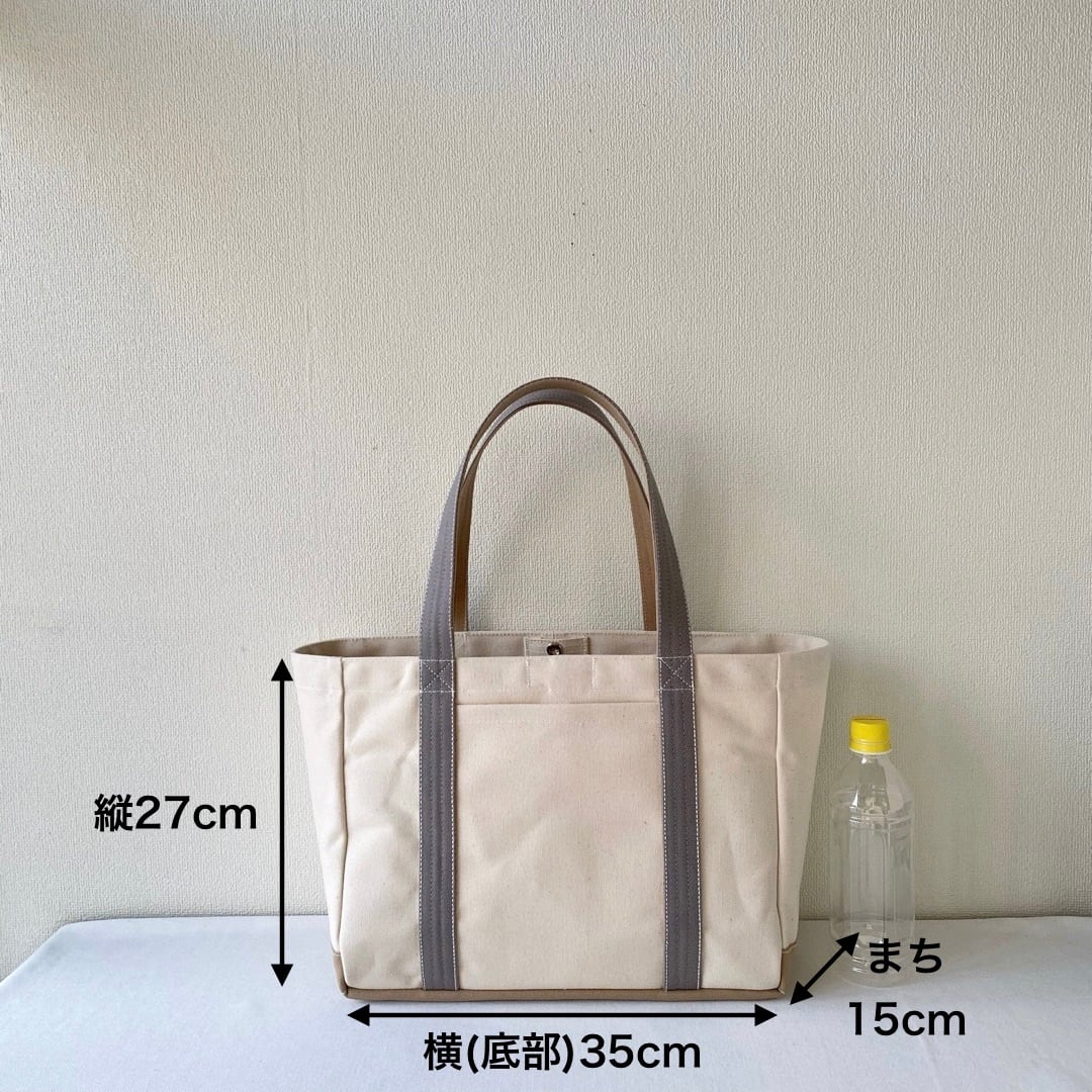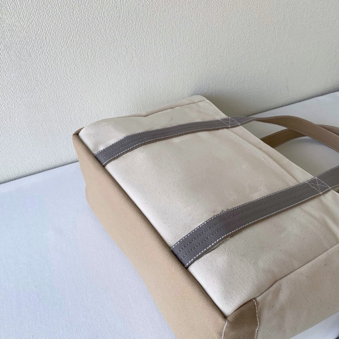■「軽いボックストート」通勤サイズ「生成り✕カフェオレ✕グレー」です。