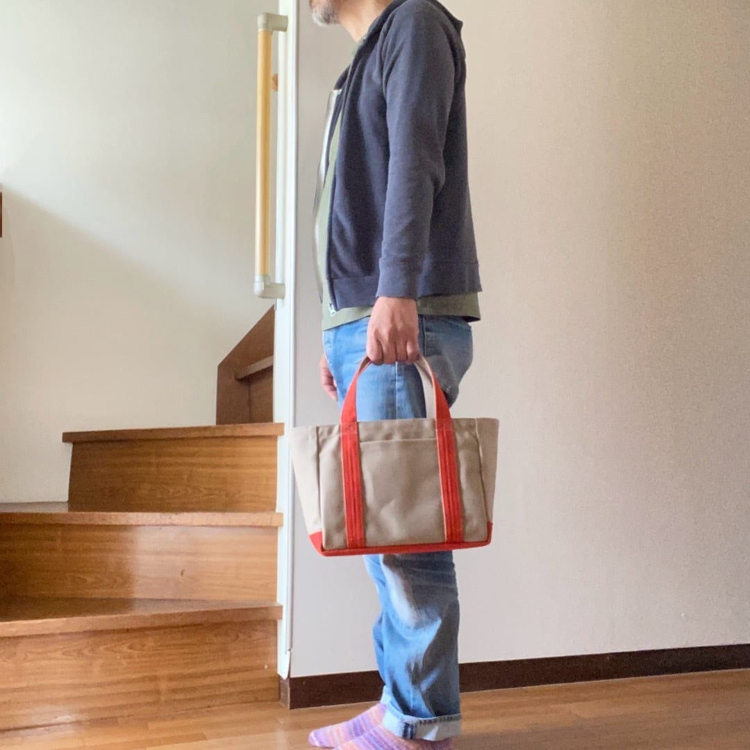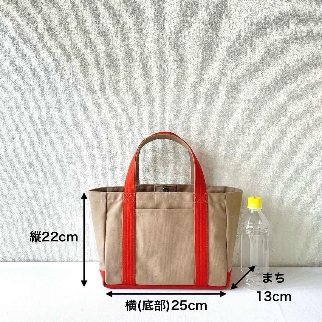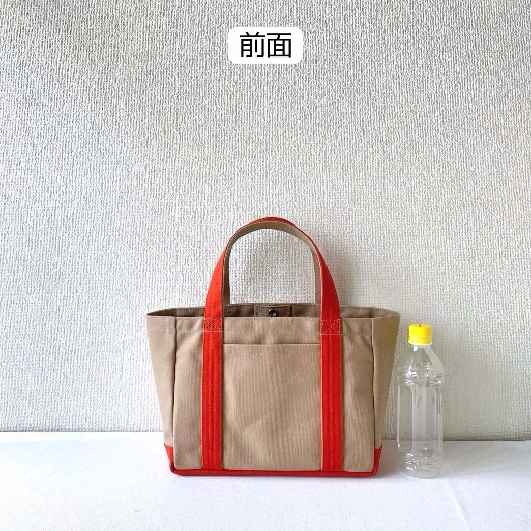 ■「軽いボックストート」小サイズ「ベージュ✕ベンガラレッド」 です。