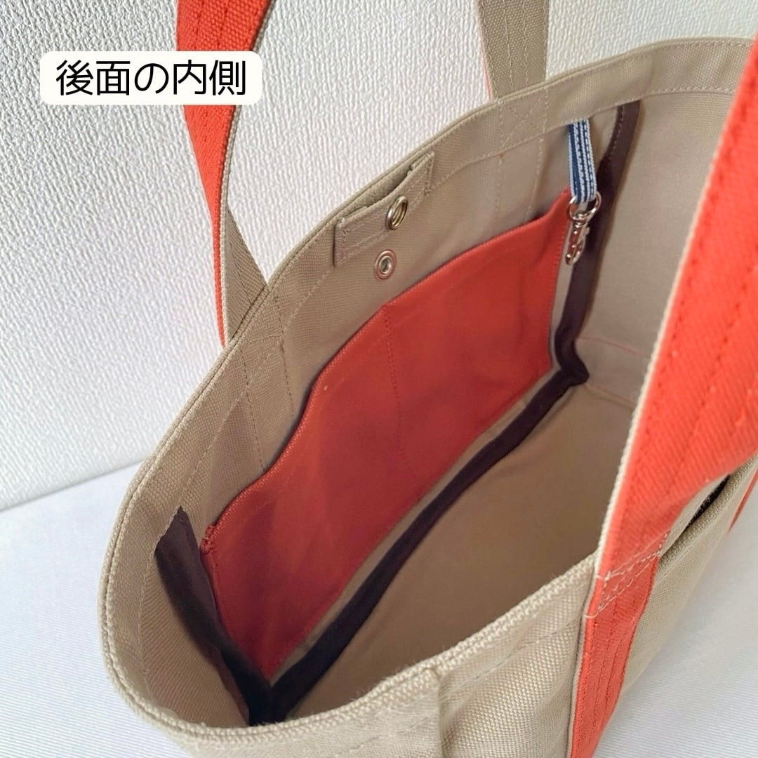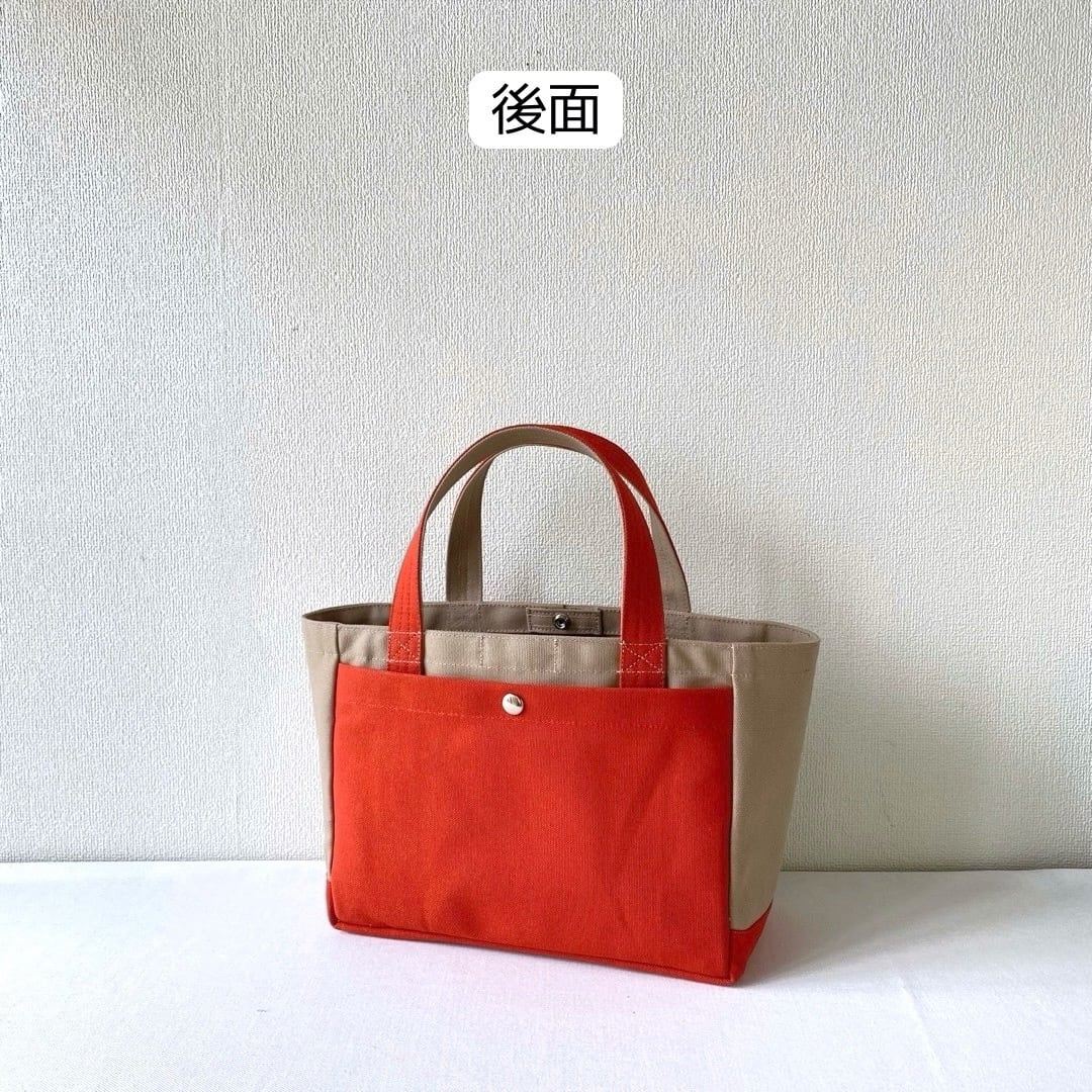 「ベージュ」と「ベンガラレッド」の2色使いのトートバッグです。
