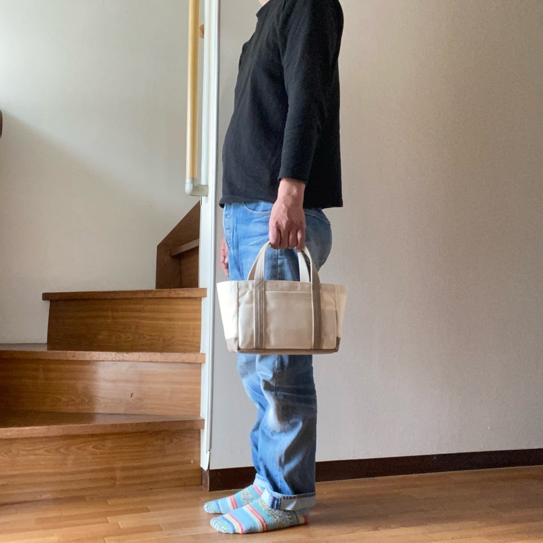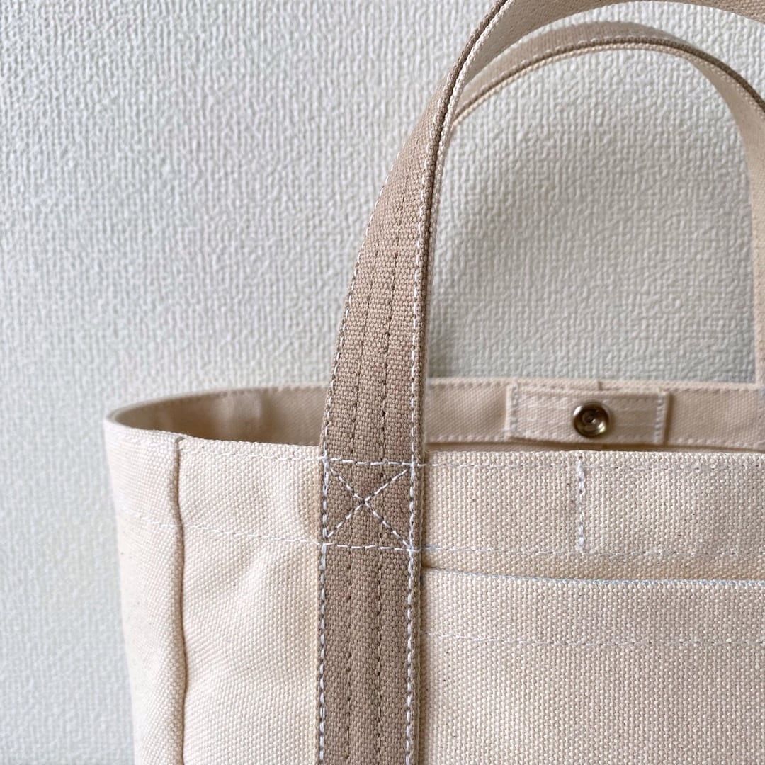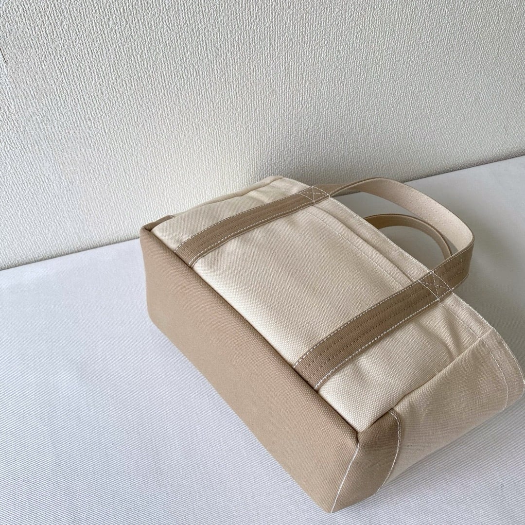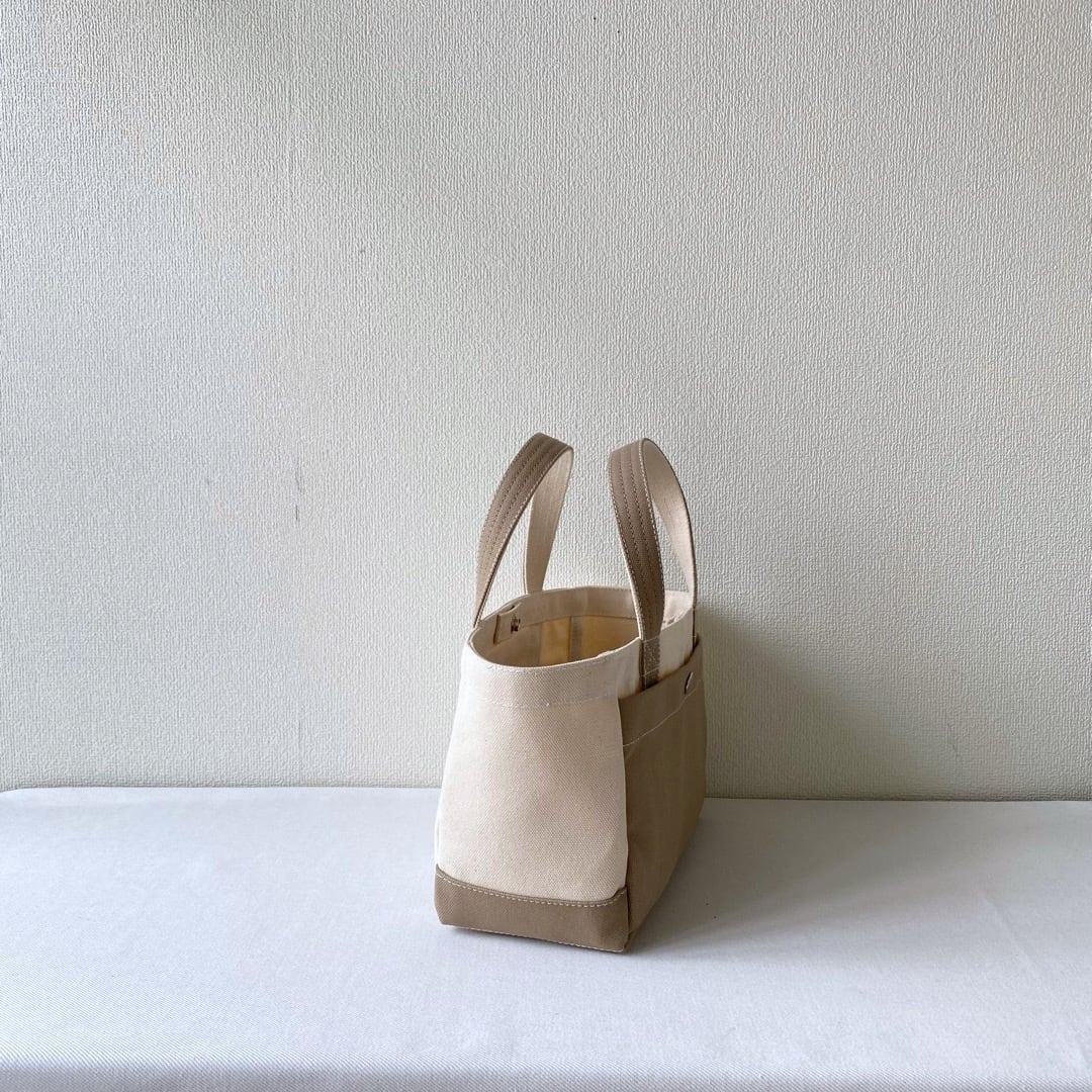 ■「軽いボックストート」ミニサイズ「生成り✕ベージュ」です。