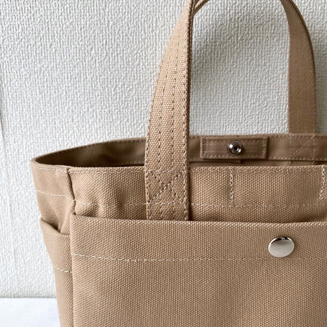 ・トートバッグの前後両サイドに、外ポケットと内ポケットを付けました。