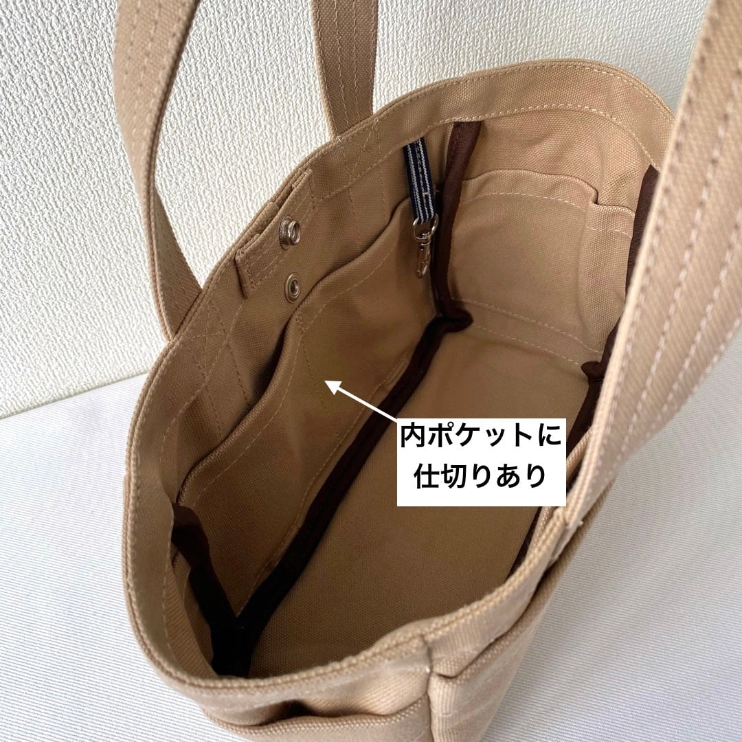 ◯トートバッグの前後両サイドに、外ポケットと内ポケットを付けました。