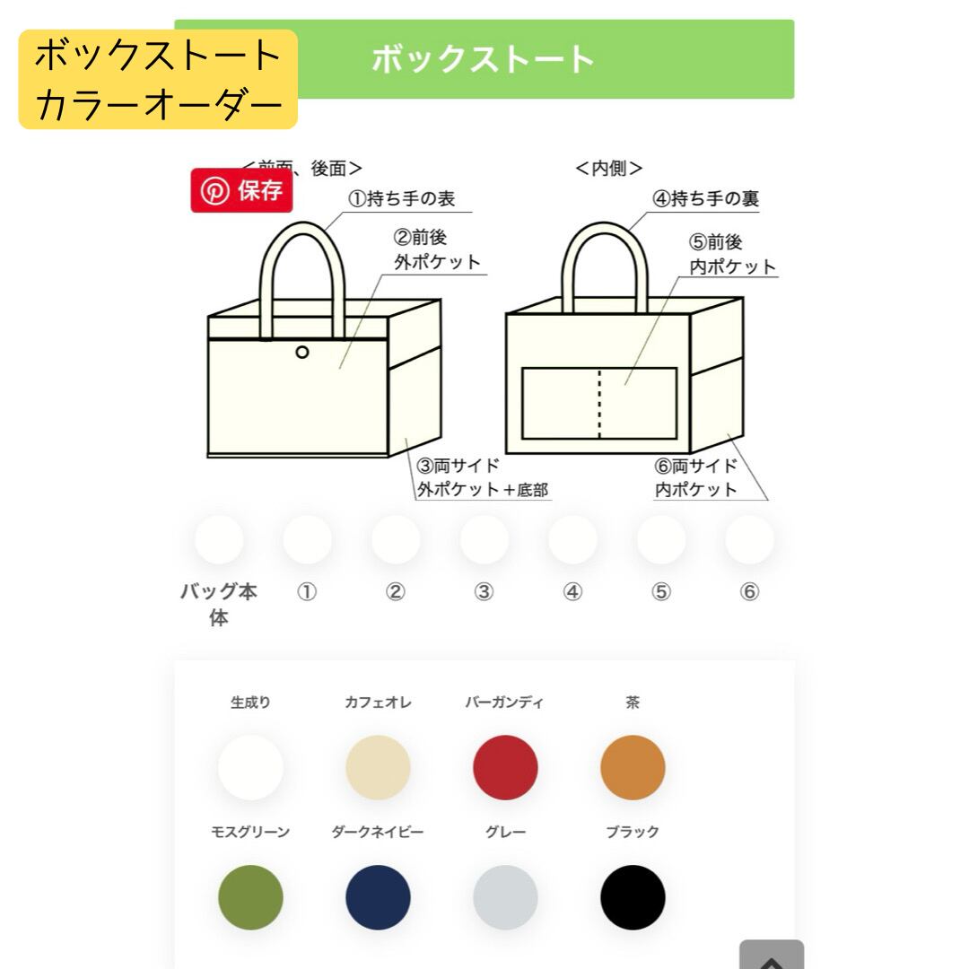 「追加料金なしで、バッグの持ち手、ポケットの色、変更出来ます」をご覧ください。