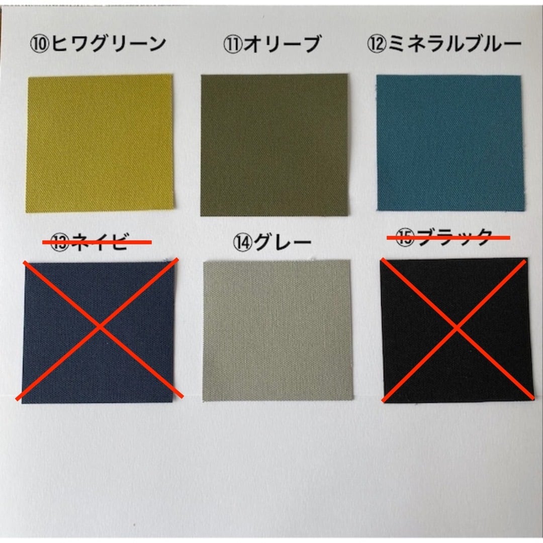 詳しくは、「取り扱い色、倉敷帆布8号帆布、アルマダ8号帆布/セイラー11号帆布について」をご覧ください。