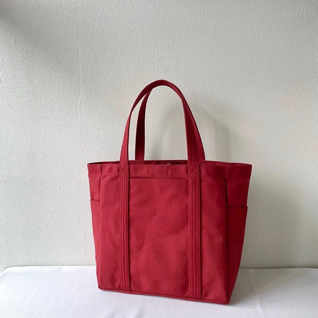 「ボックストート」の大きな外ポケット、「ポケットトート」の2段内ポケットの両方が使える、欲張りなトートバッグになりました。