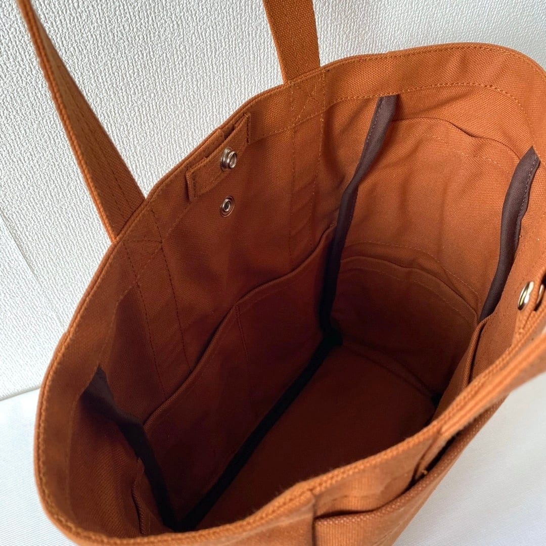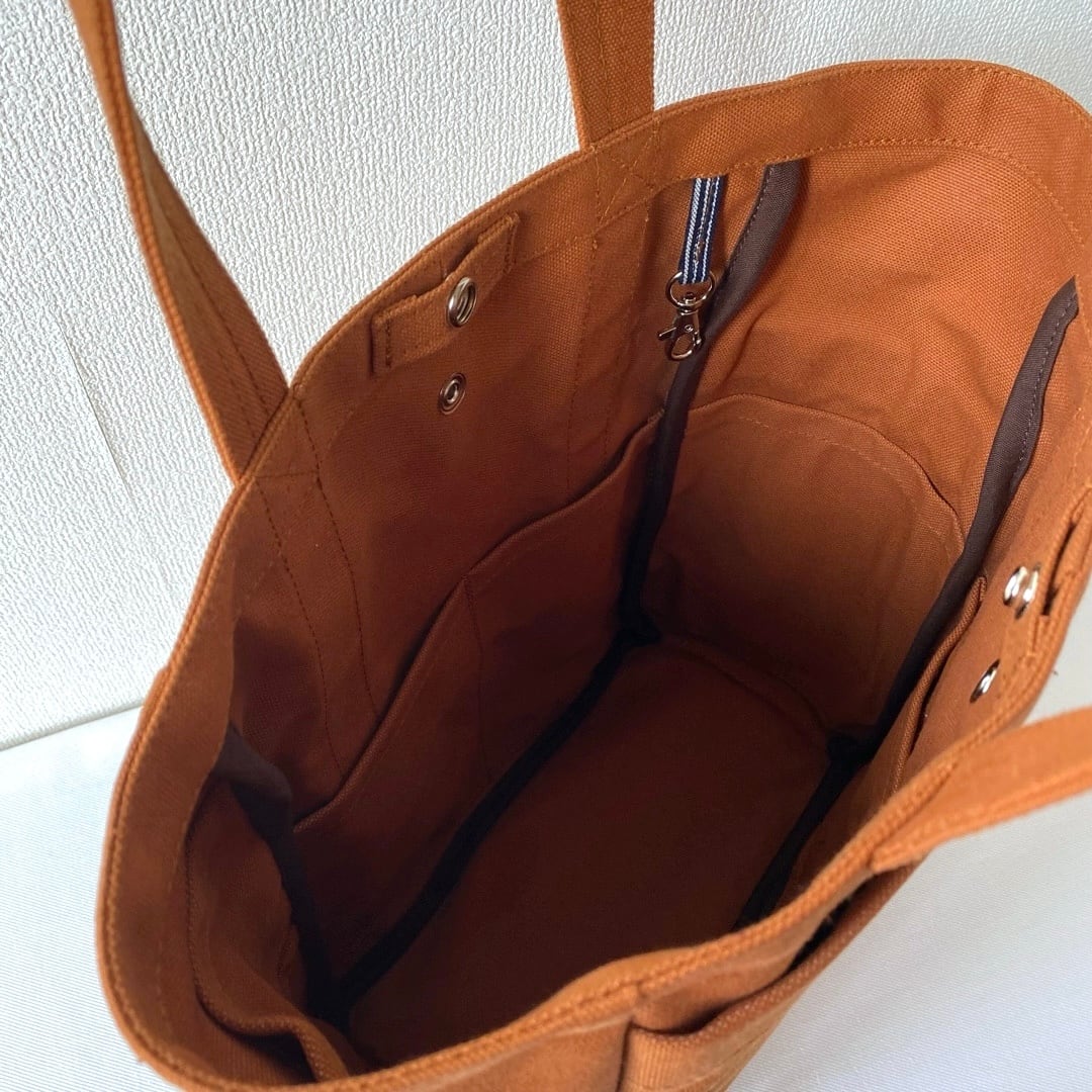 ・トートバッグの前後両サイドに、外ポケットと内ポケットを付けました。
