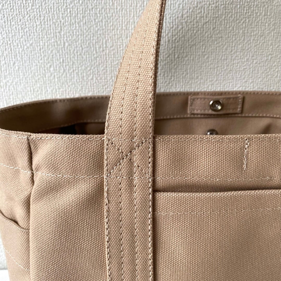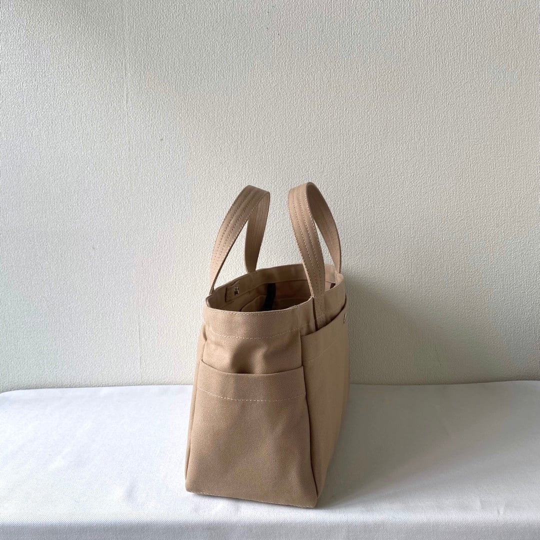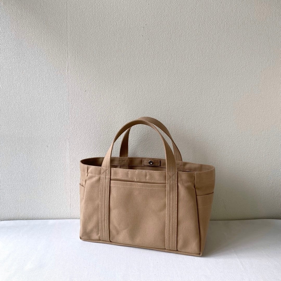 「ボックストート」の大きな外ポケット、「ポケットトート」の2段内ポケットの両方が使える、欲張りなトートバッグになりました。