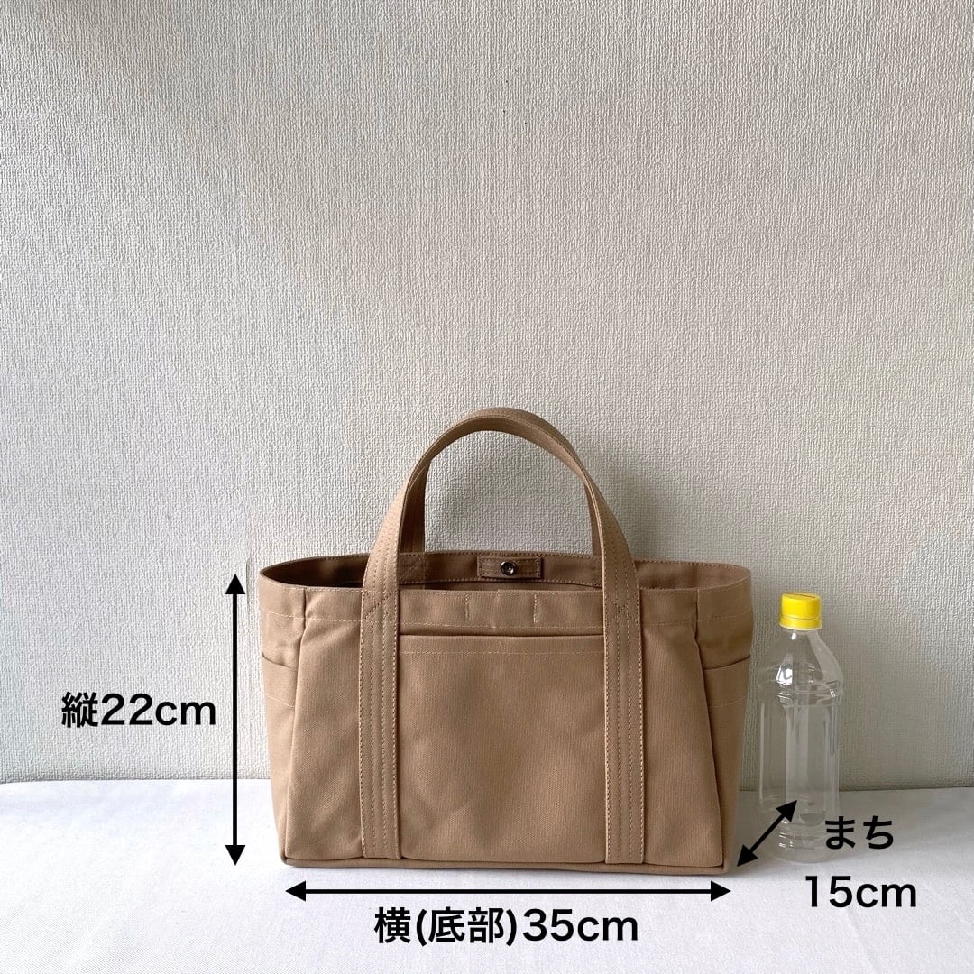 バッグ:たて22cm よこ(底部)35cm まち15cm
