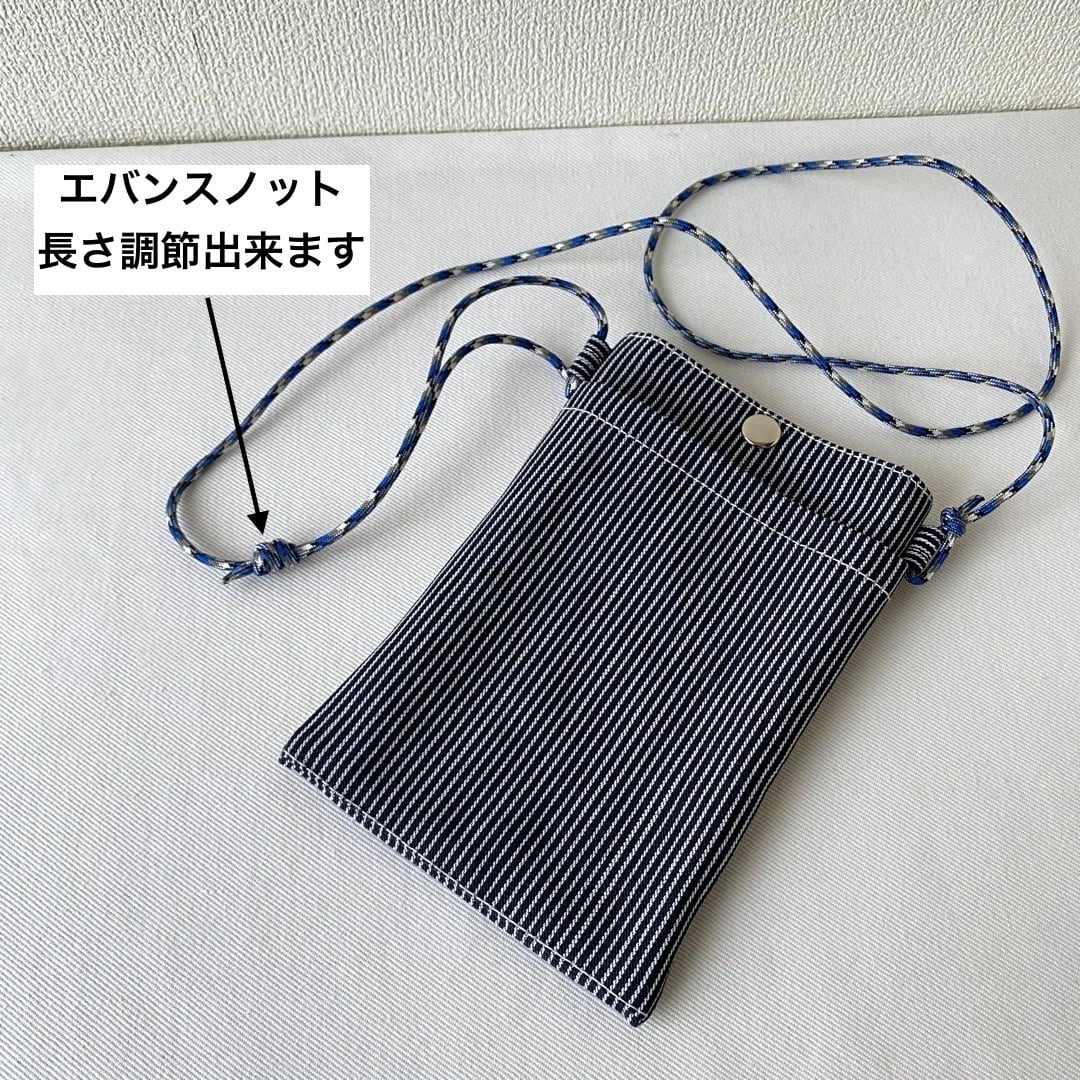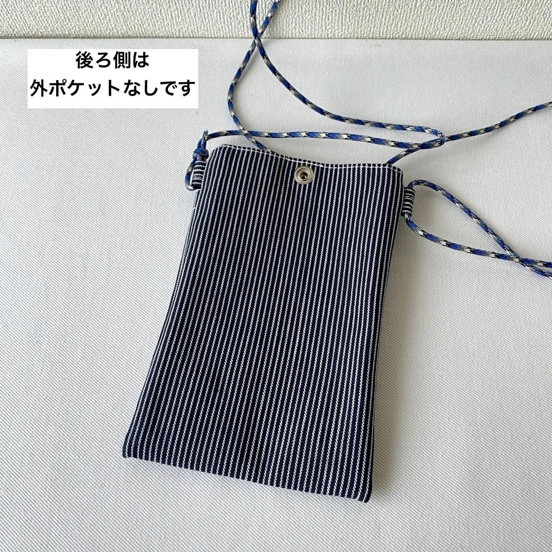 ■帆布生地で作った、外ポケット付きスマホショルダーをヒッコリーデニム生地を使って作りました。